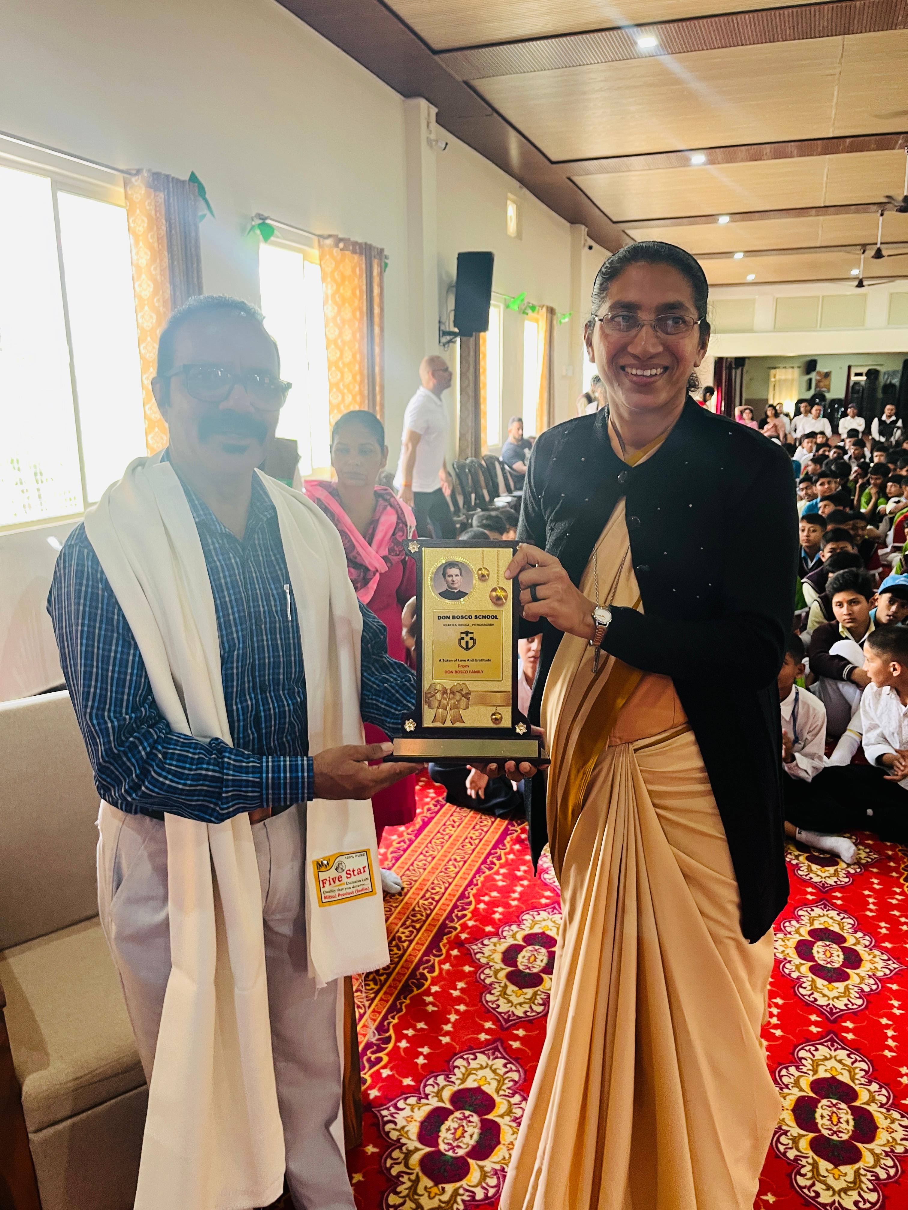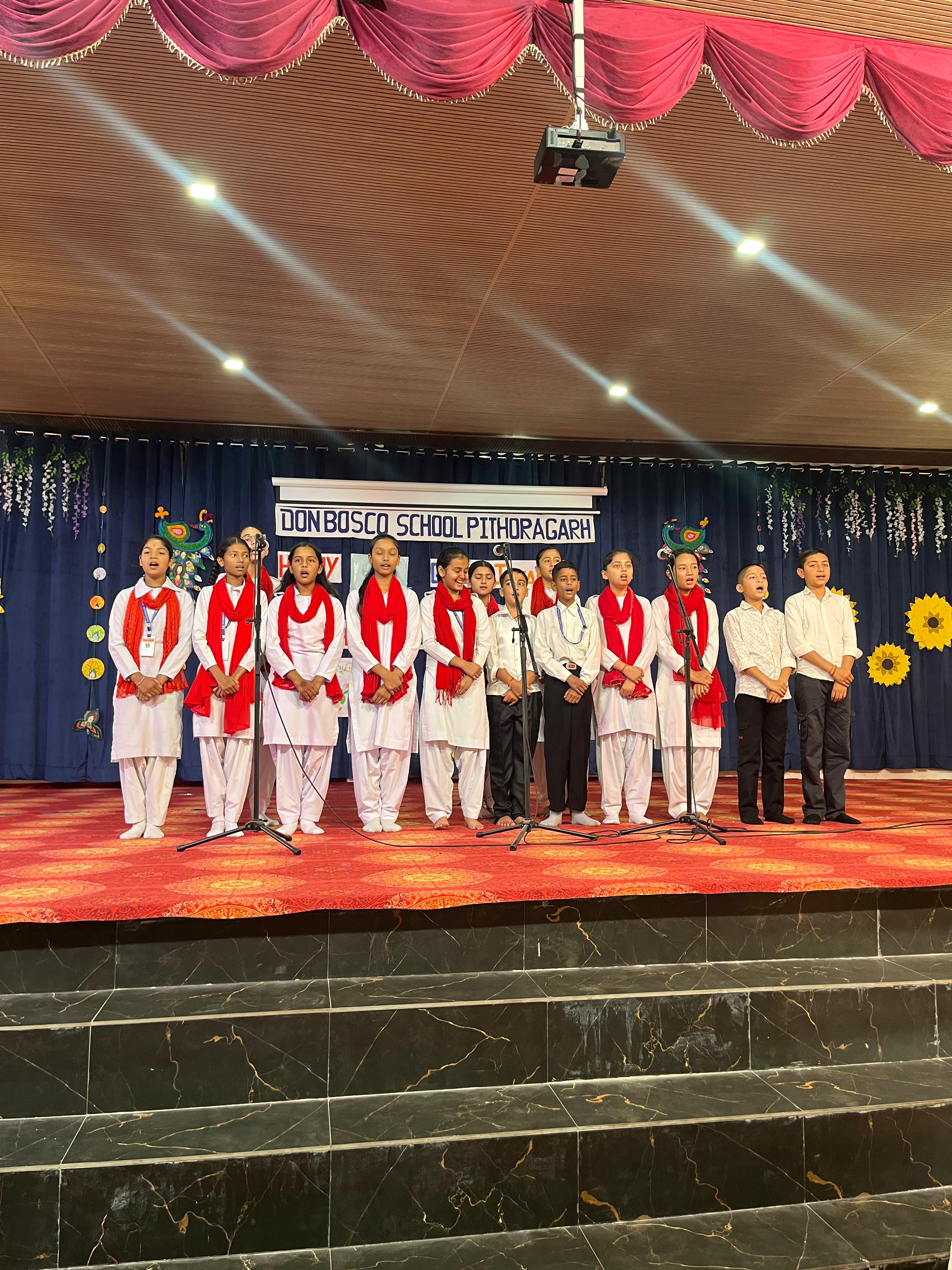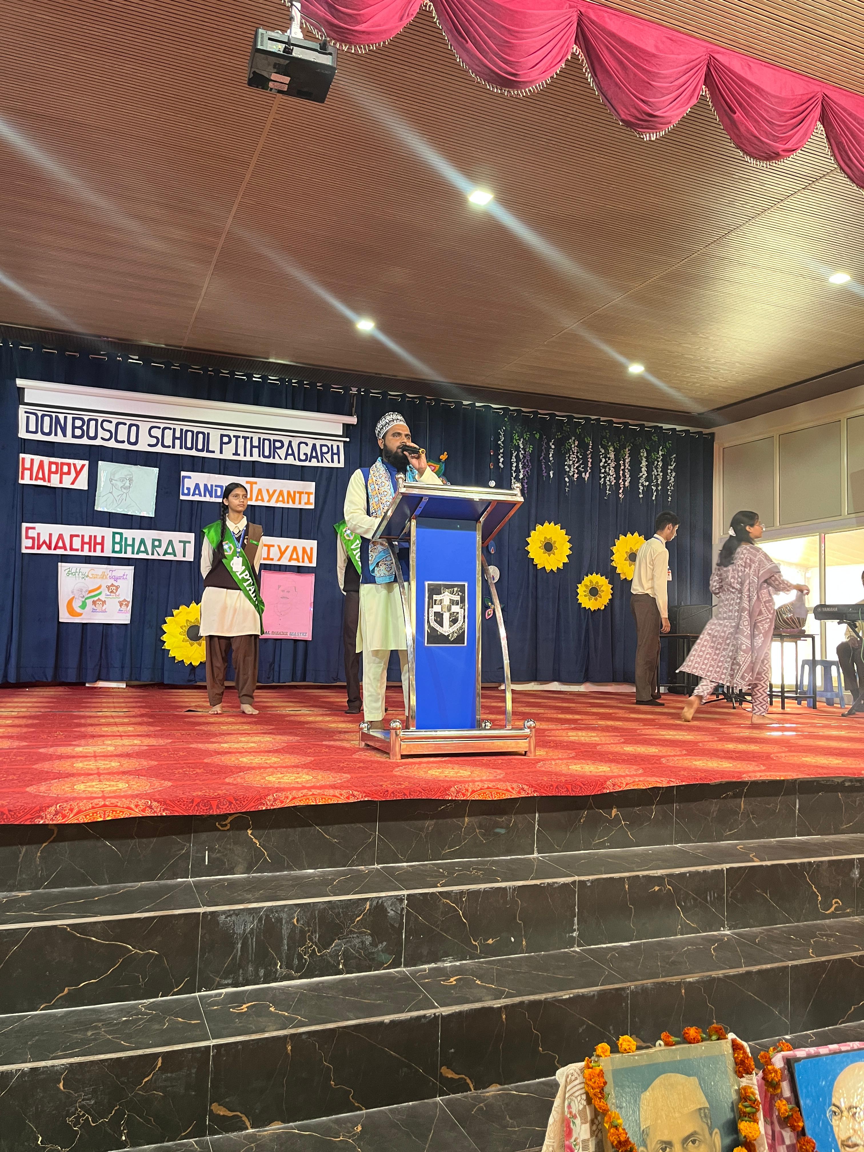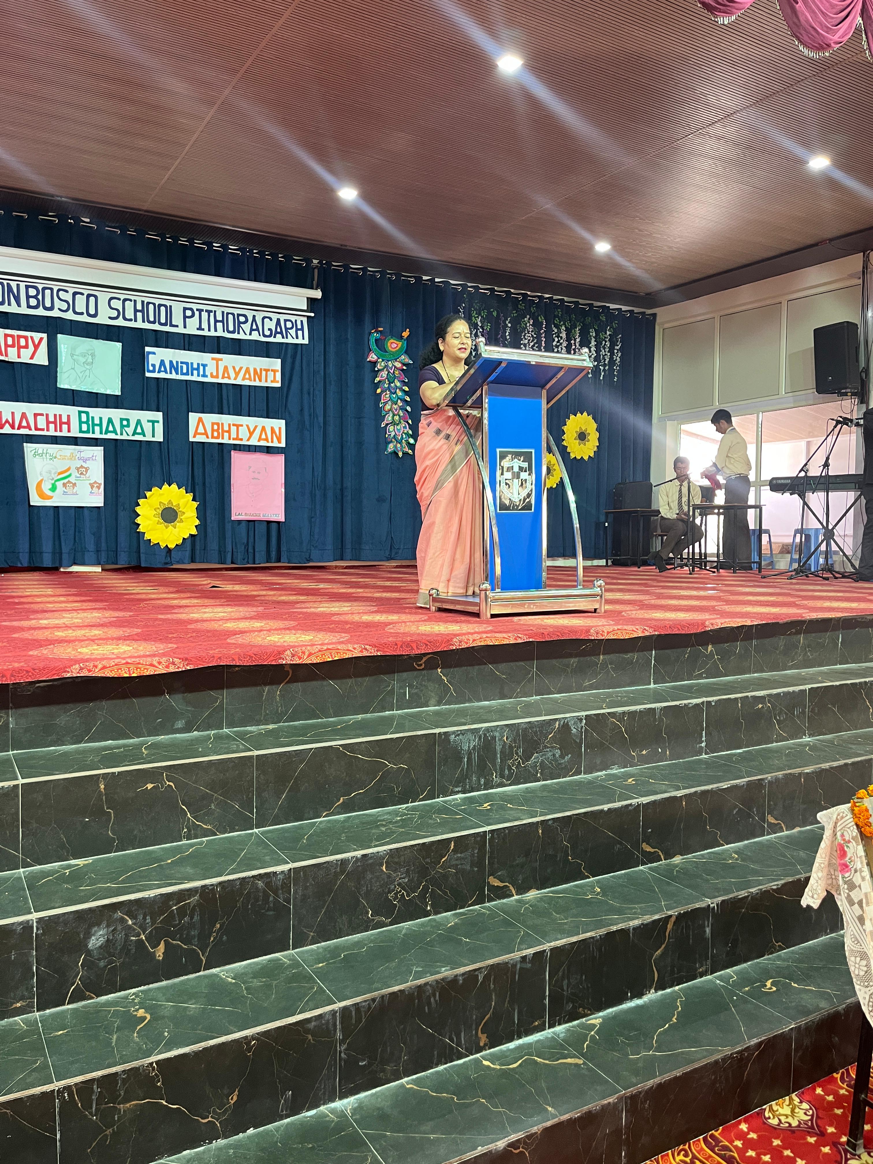 Description : Gandhi Jayanti and Lal Bahadur Shastri Jayanti Celebration at Don Bosco School Don Bosco School celebrated the birth anniversaries of Mahatma Gandhi and Lal Bahadur Shastri with great enthusiasm and patriotic spirit. The event commenced with the hoisting of the national flag, followed by a disciplined march past by the students. People from various religions were invited to the celebration, and they shared messages of peace, unity, and love with the students. Inspirational stories and teachings from the lives of Mahatma Gandhi and Lal Bahadur Shastri were shared to highlight their immense contributions to the nation. A ceremonial lamp was lit to inaugurate the cultural program. Patriotic songs were sung, and students presented various performances that showcased India’s rich Sanskriti (cultural) heritage. The celebration effectively conveyed the values of truth, non-violence, simplicity, and national pride.