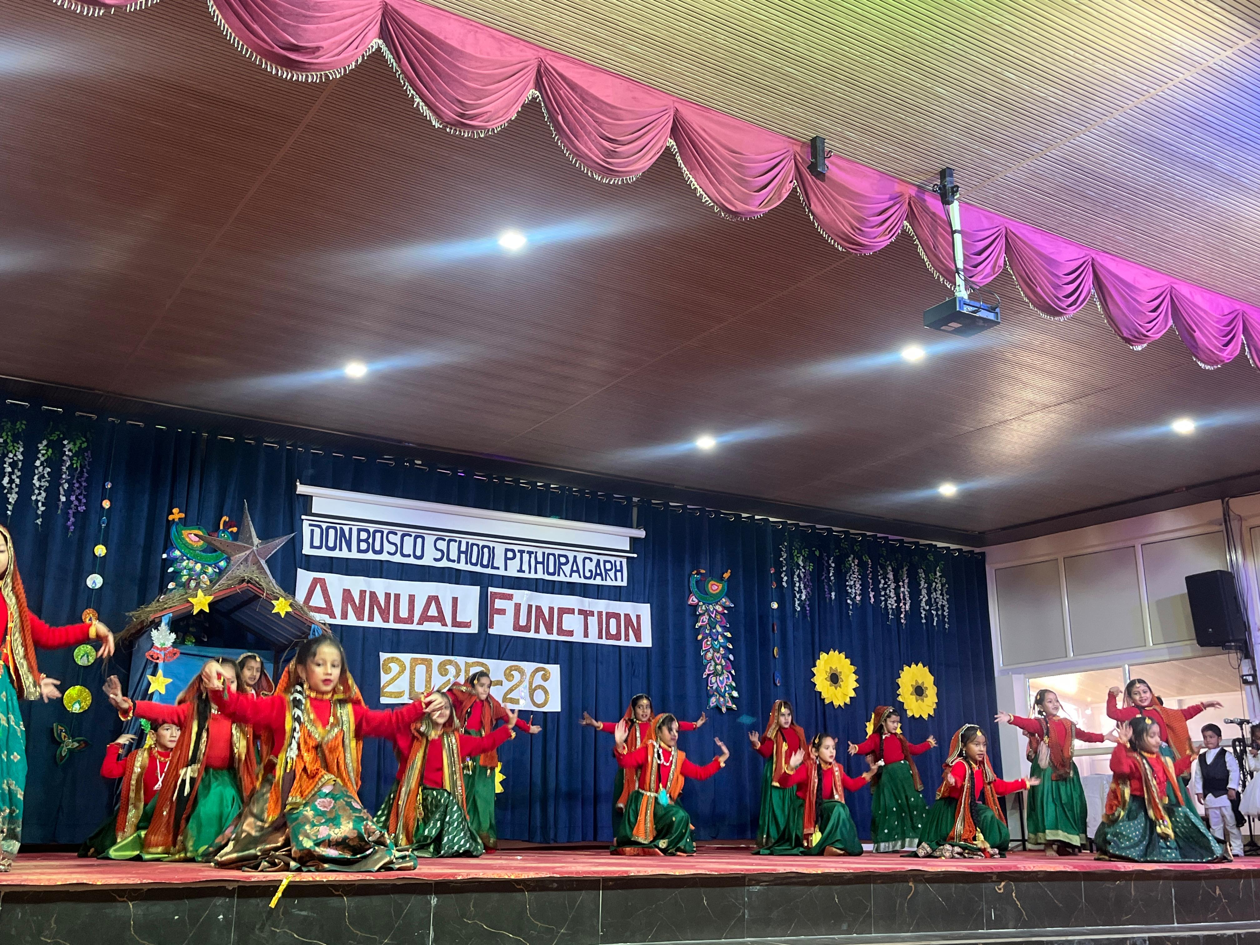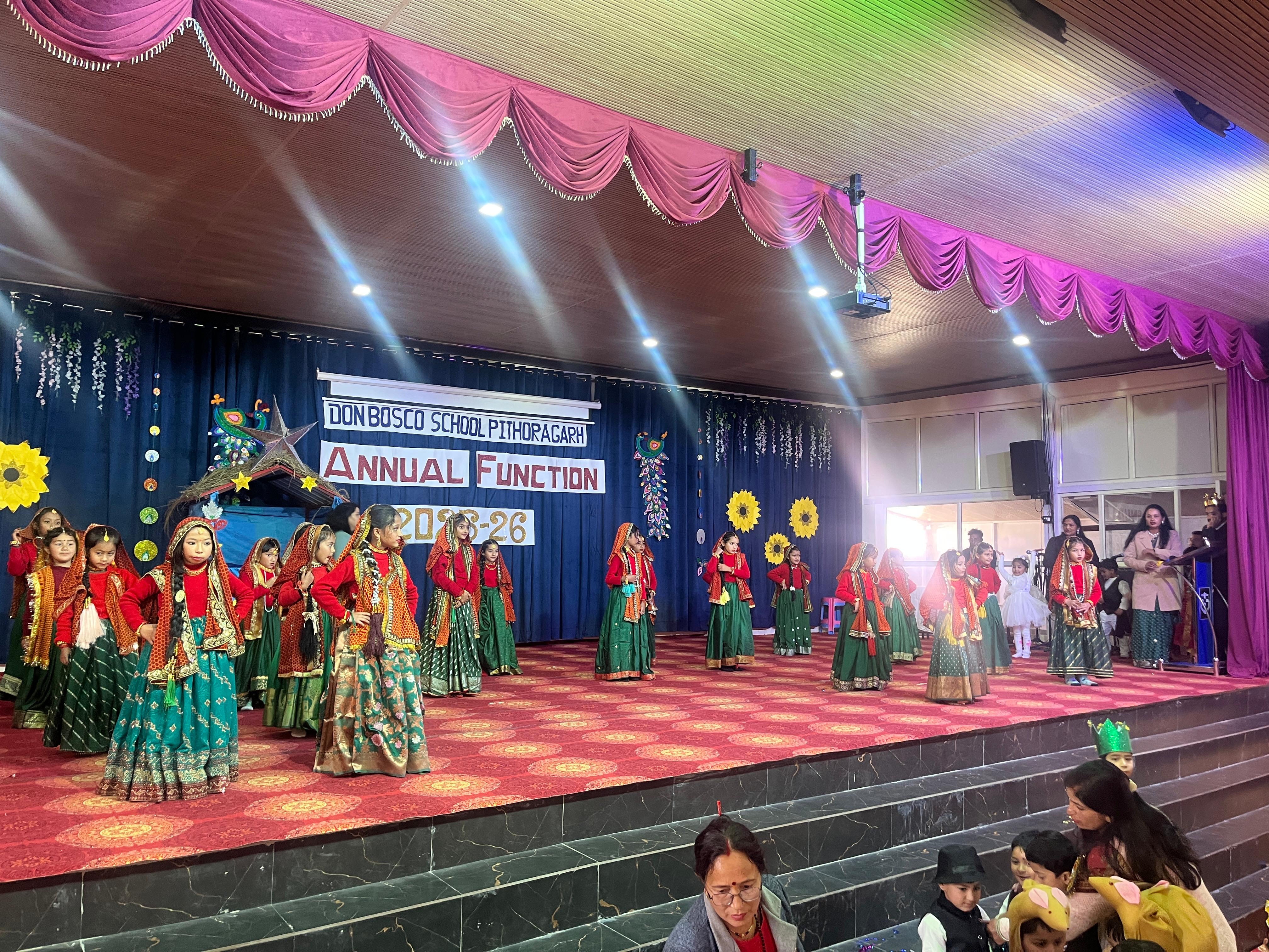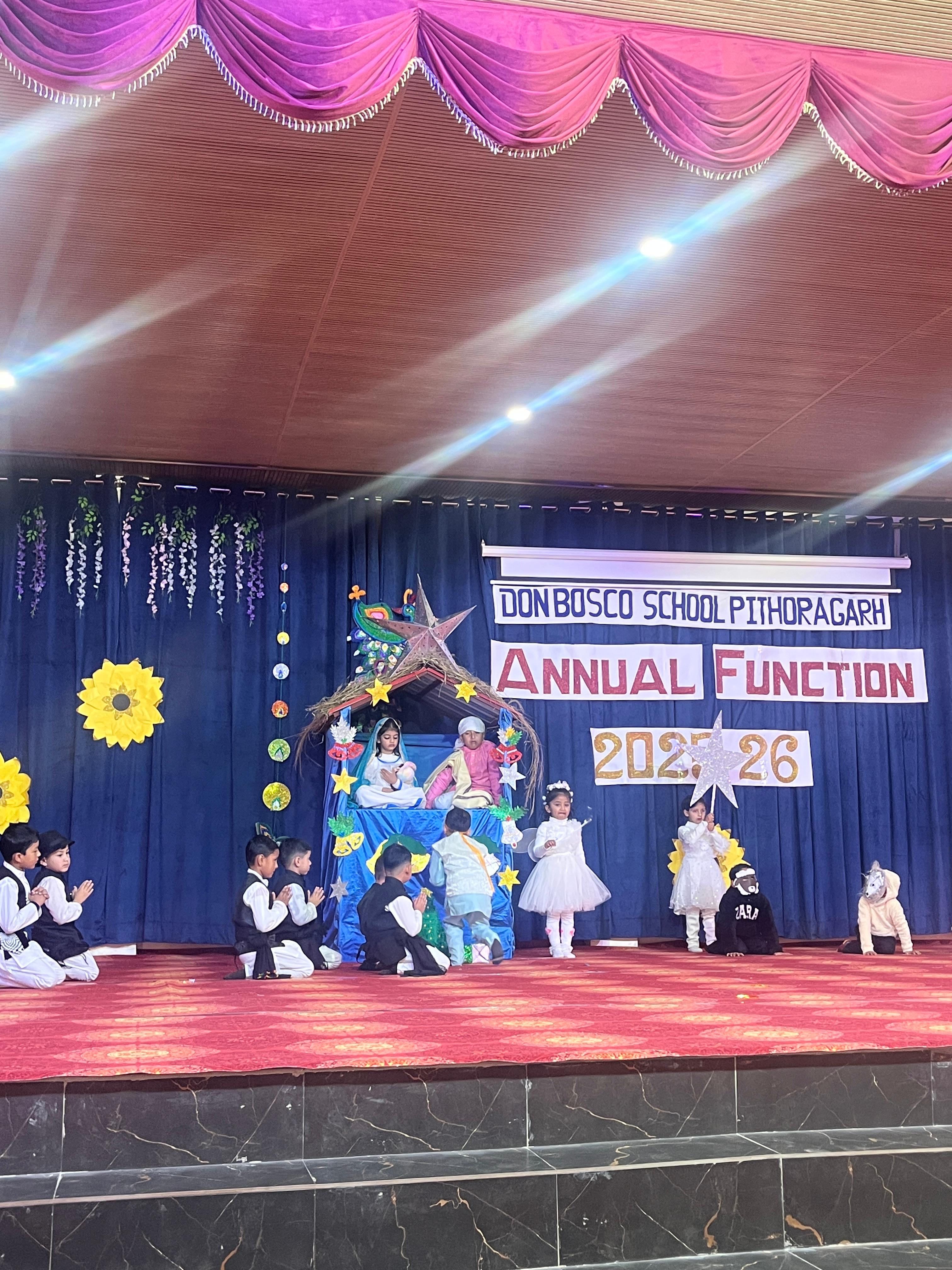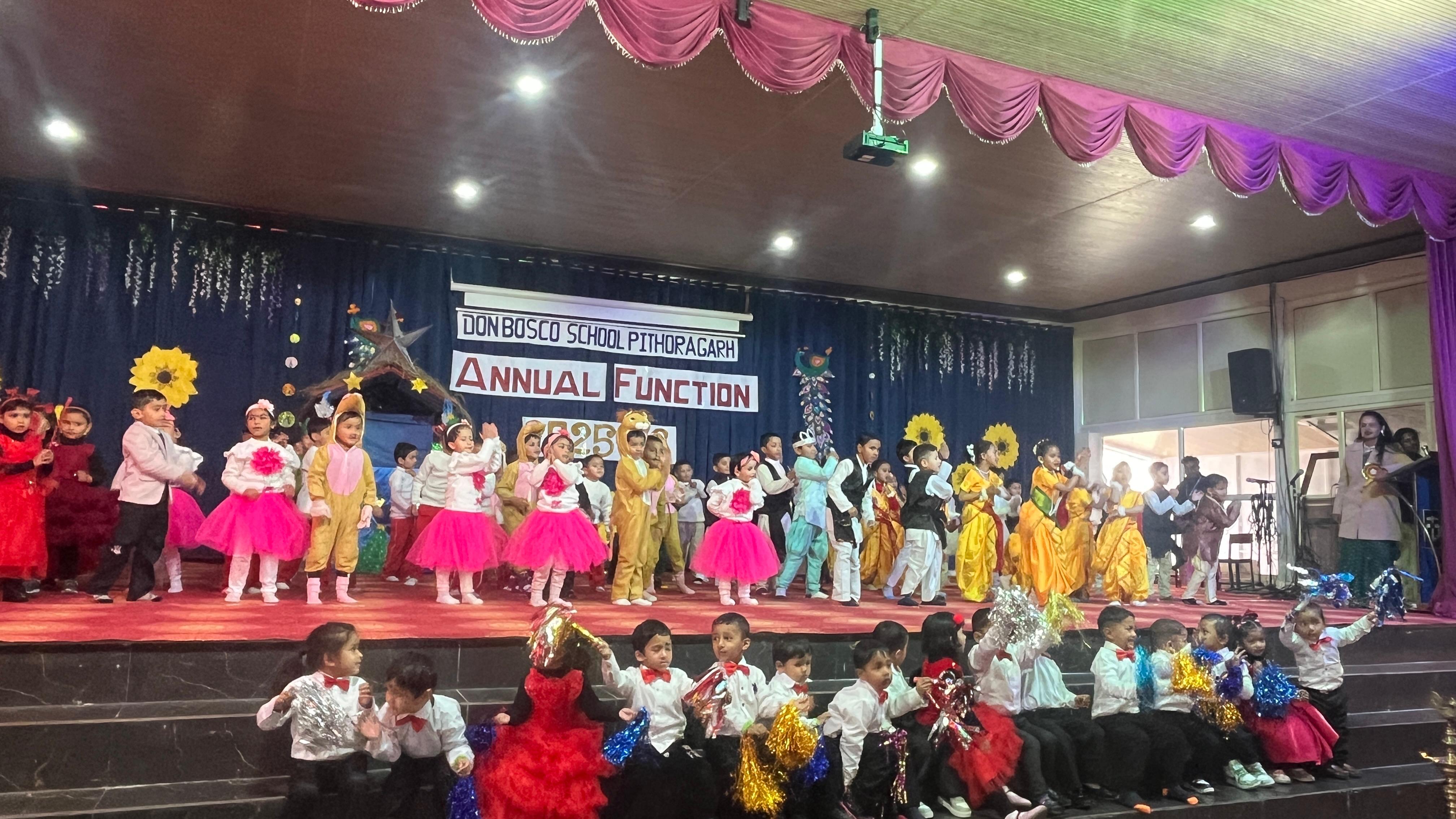 Description : Pre-Primary Annual Day Celebration 2025 at Don Bosco School, Pithoragarh The Pre-Primary Annual Day Celebration 2025 was held with great joy and enthusiasm at Don Bosco School, Pithoragarh. The tiny tots mesmerized the audience with colorful dance performances, songs, and fun-filled acts. The programme reflected the creativity and confidence of the young students. Teachers and parents appreciated the efforts of the children, making the event a joyful and memorable occasion for everyone present.
