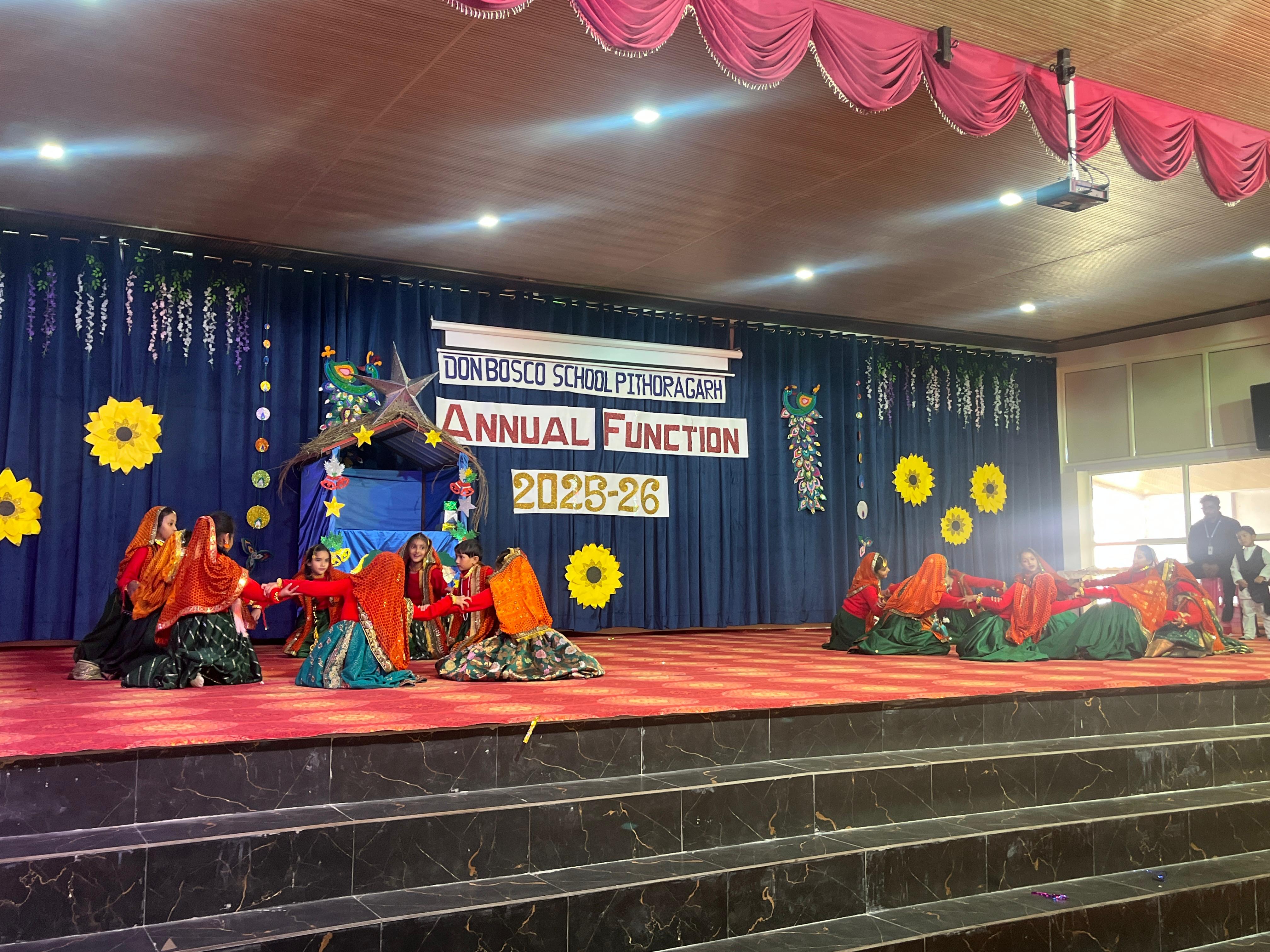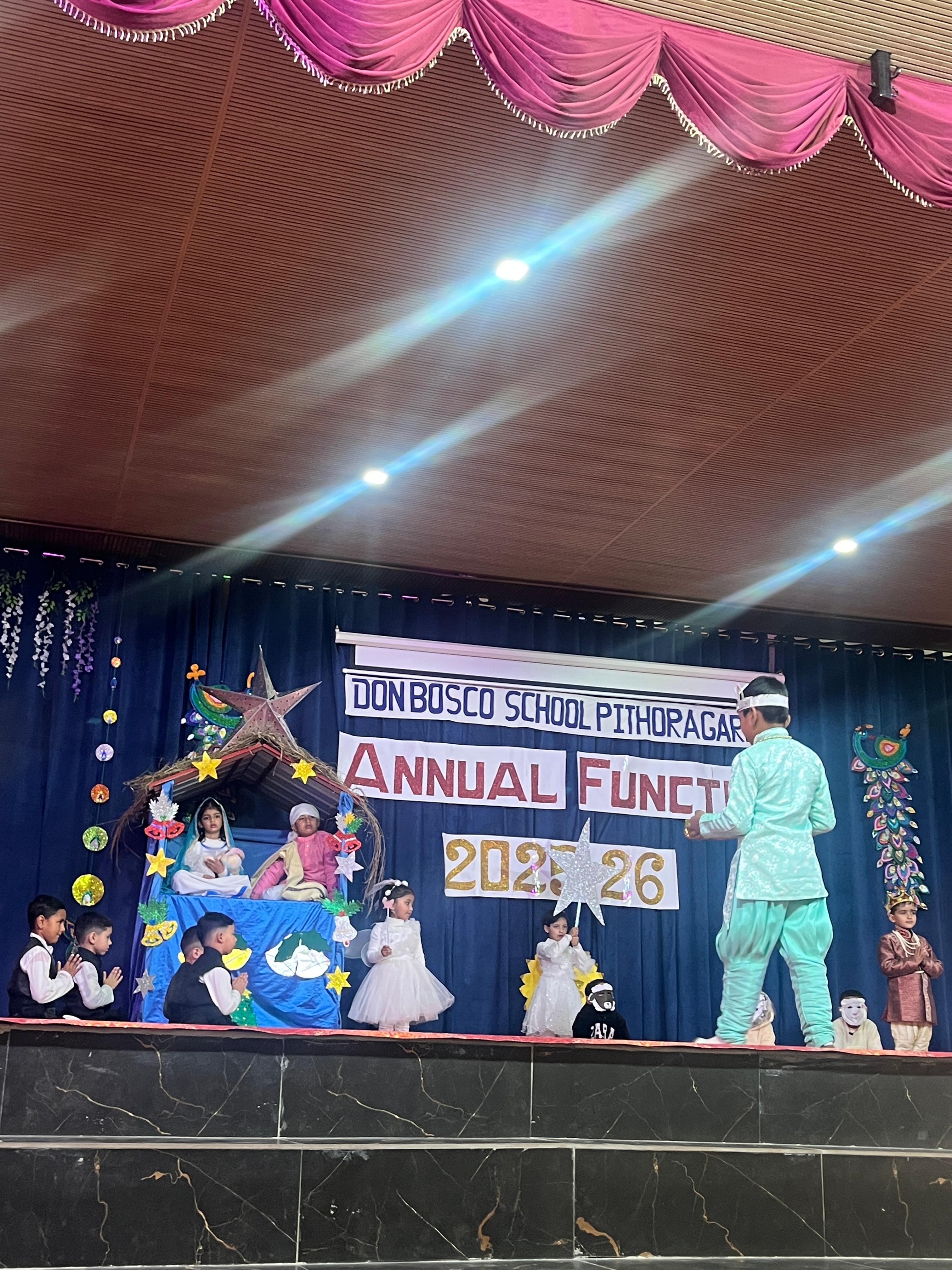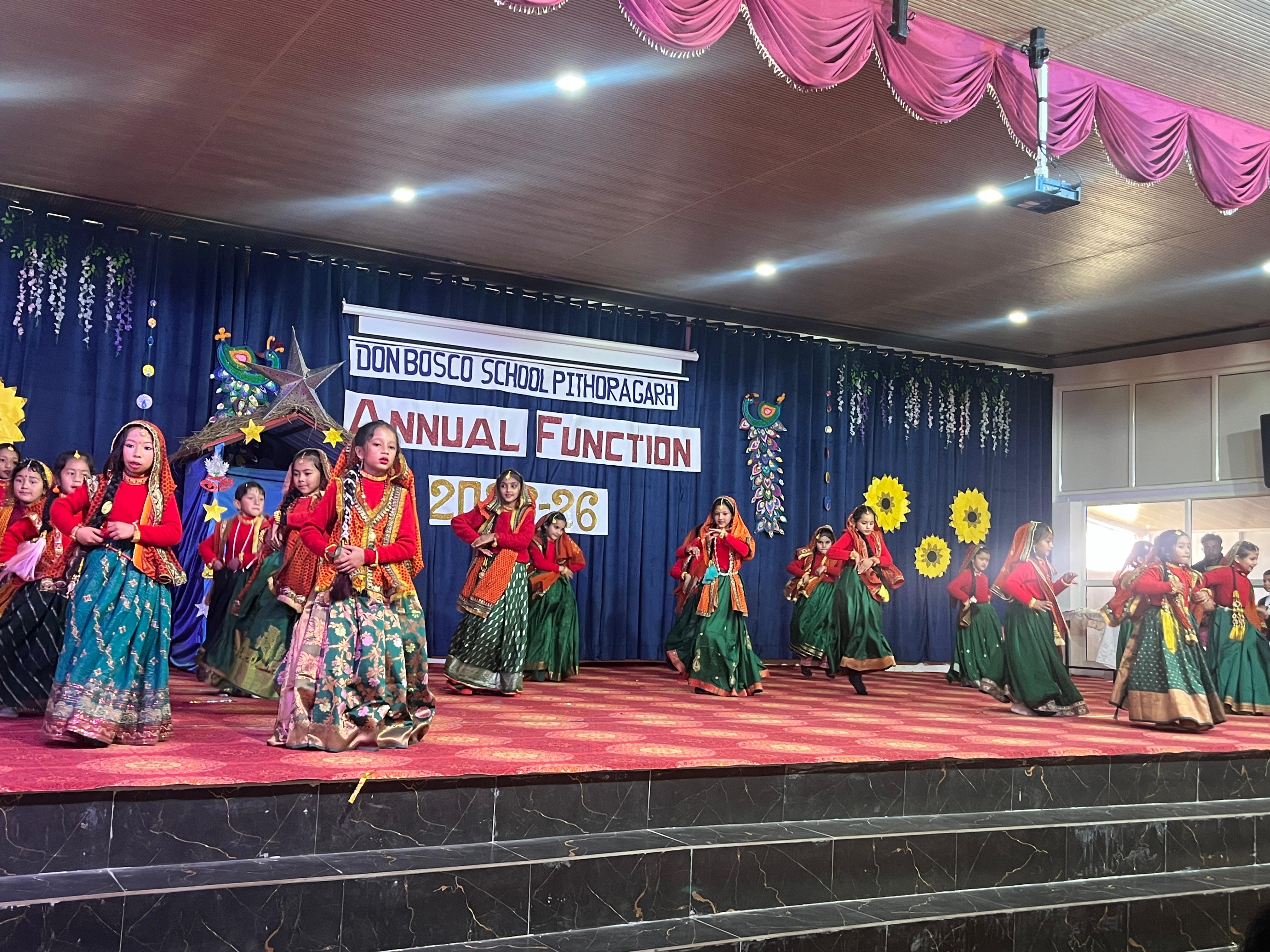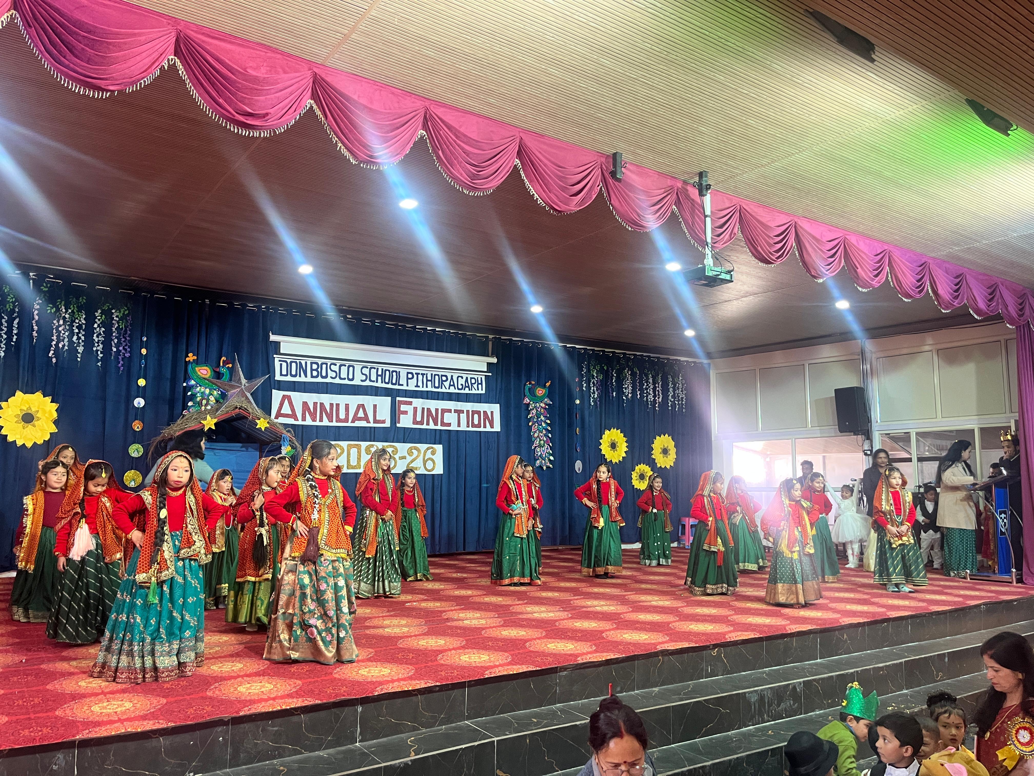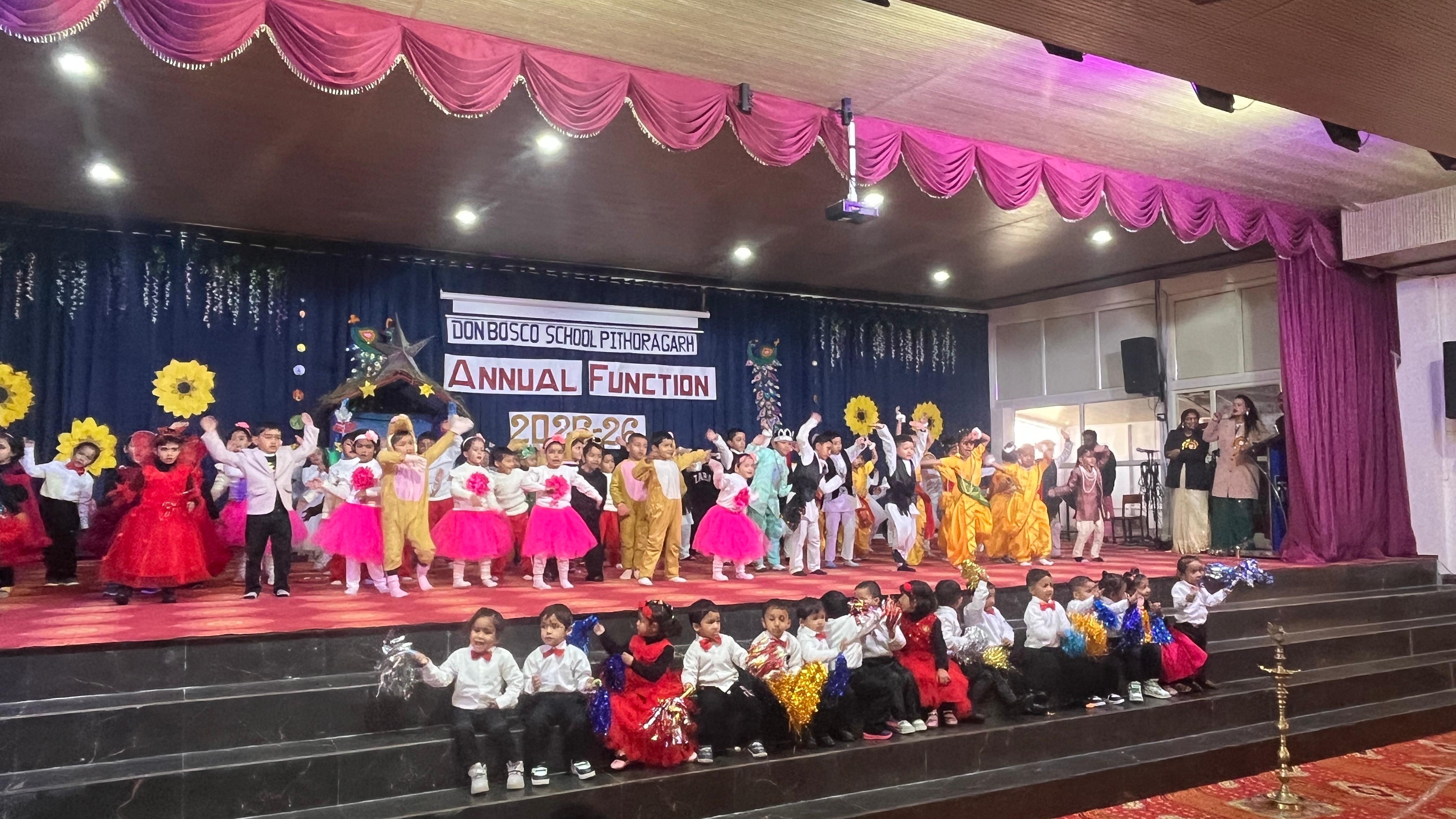 Description : Pre-Primary Annual Day Celebration 2025 at Don Bosco School, Pithoragarh The Pre-Primary Annual Day Celebration 2025 was held with great joy and enthusiasm at Don Bosco School, Pithoragarh. The tiny tots mesmerized the audience with colorful dance performances, songs, and fun-filled acts. The programme reflected the creativity and confidence of the young students. Teachers and parents appreciated the efforts of the children, making the event a joyful and memorable occasion for everyone present.