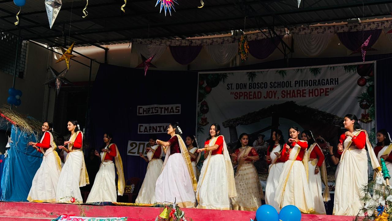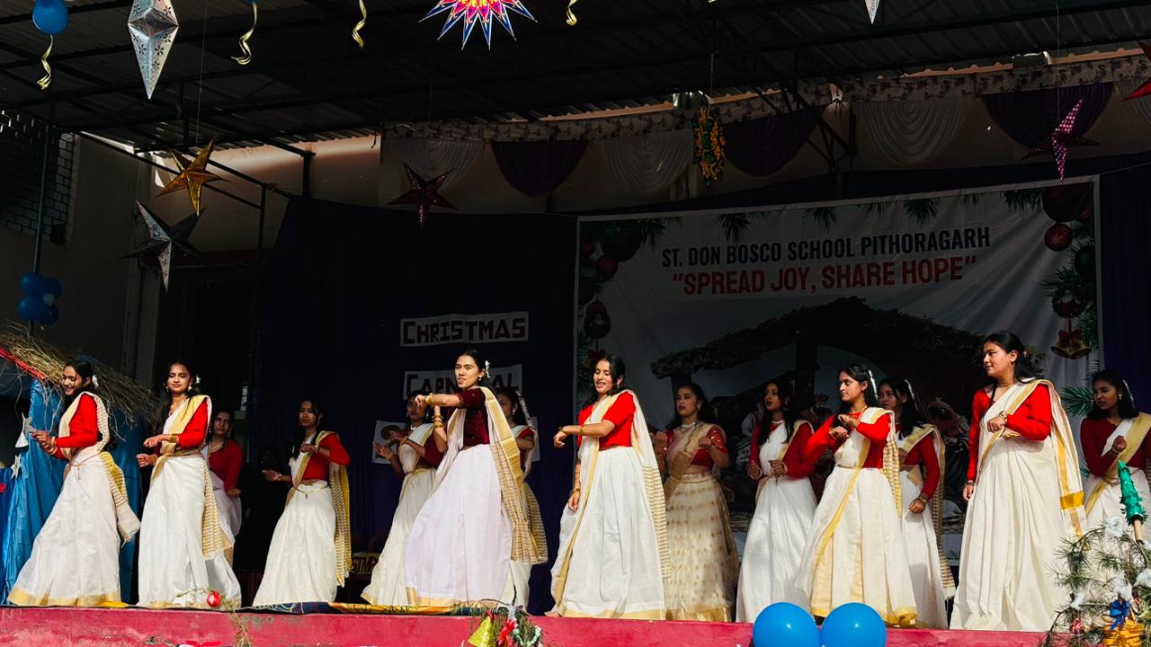 Description : Christmas Carnival Celebration at Don Bosco School, Pithoragarh Don Bosco School, Pithoragarh organized a Christmas Carnival with great enthusiasm and festive spirit. Students presented a variety of well-prepared cultural programmes, including dances and songs, showcasing their talents. A small mela was also arranged, adding to the joy and vibrancy of the occasion. Parents and members of the community were cordially invited to attend the programme. The celebration reflected the true spirit of Christmas and fostered a sense of joy, unity, and togetherness among all present.