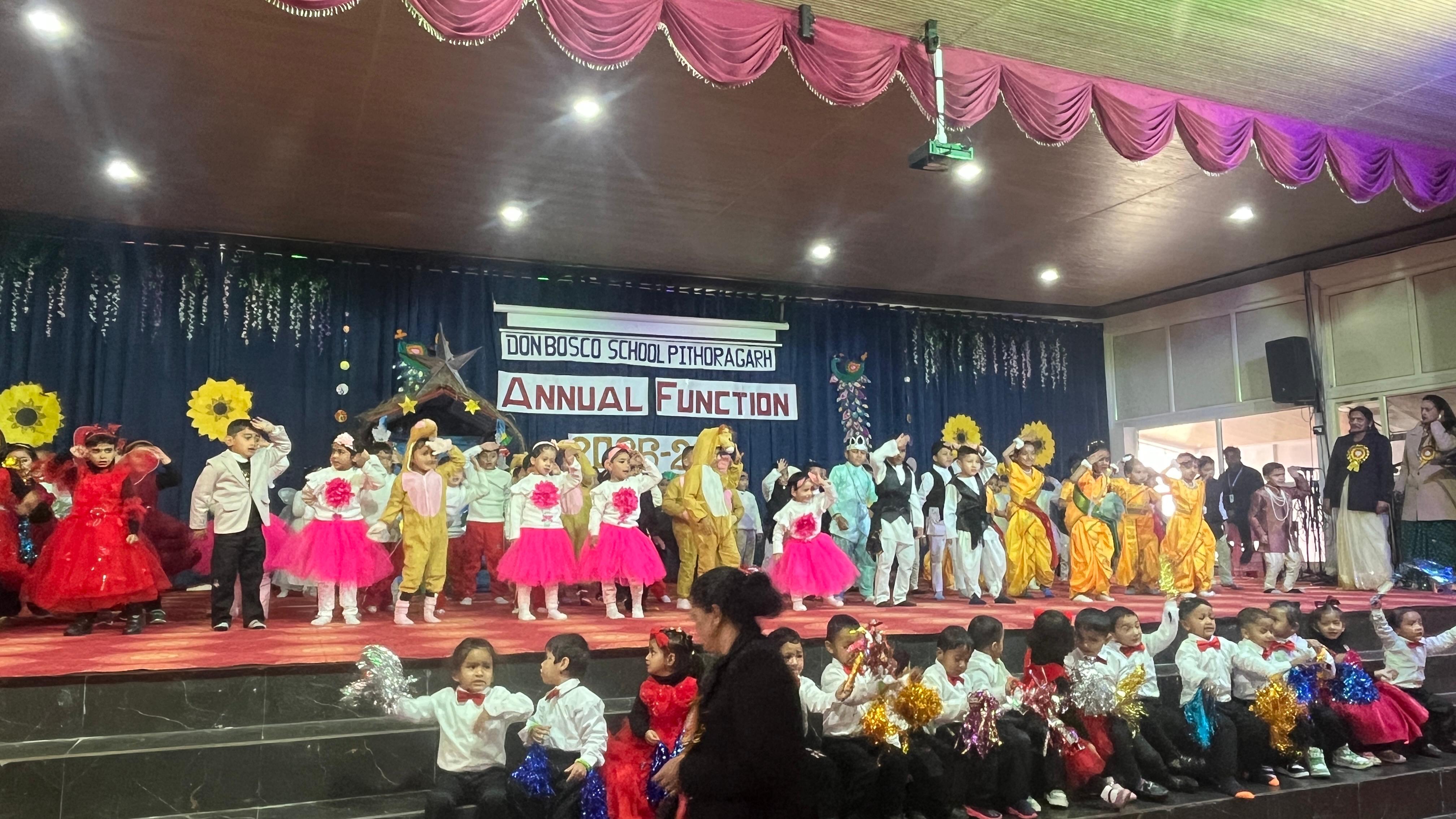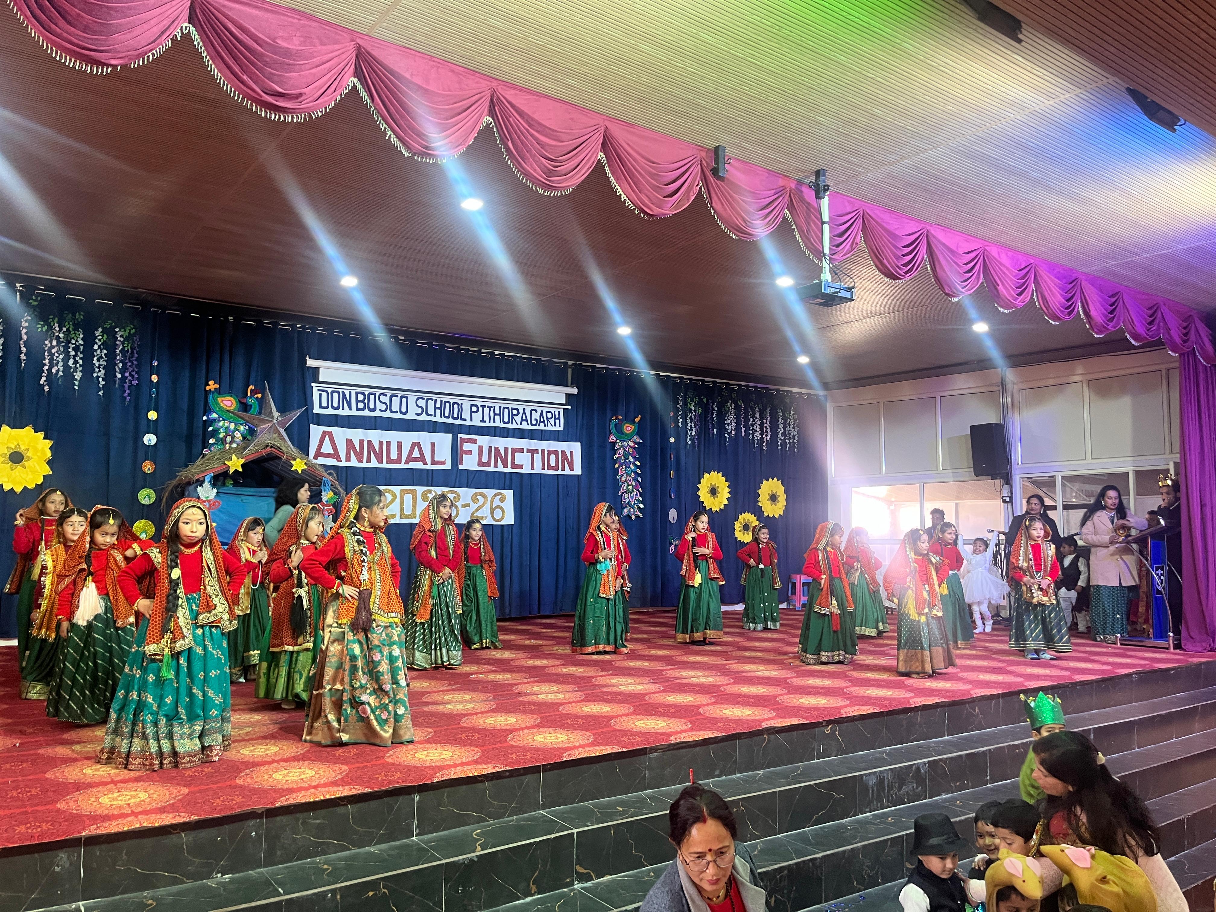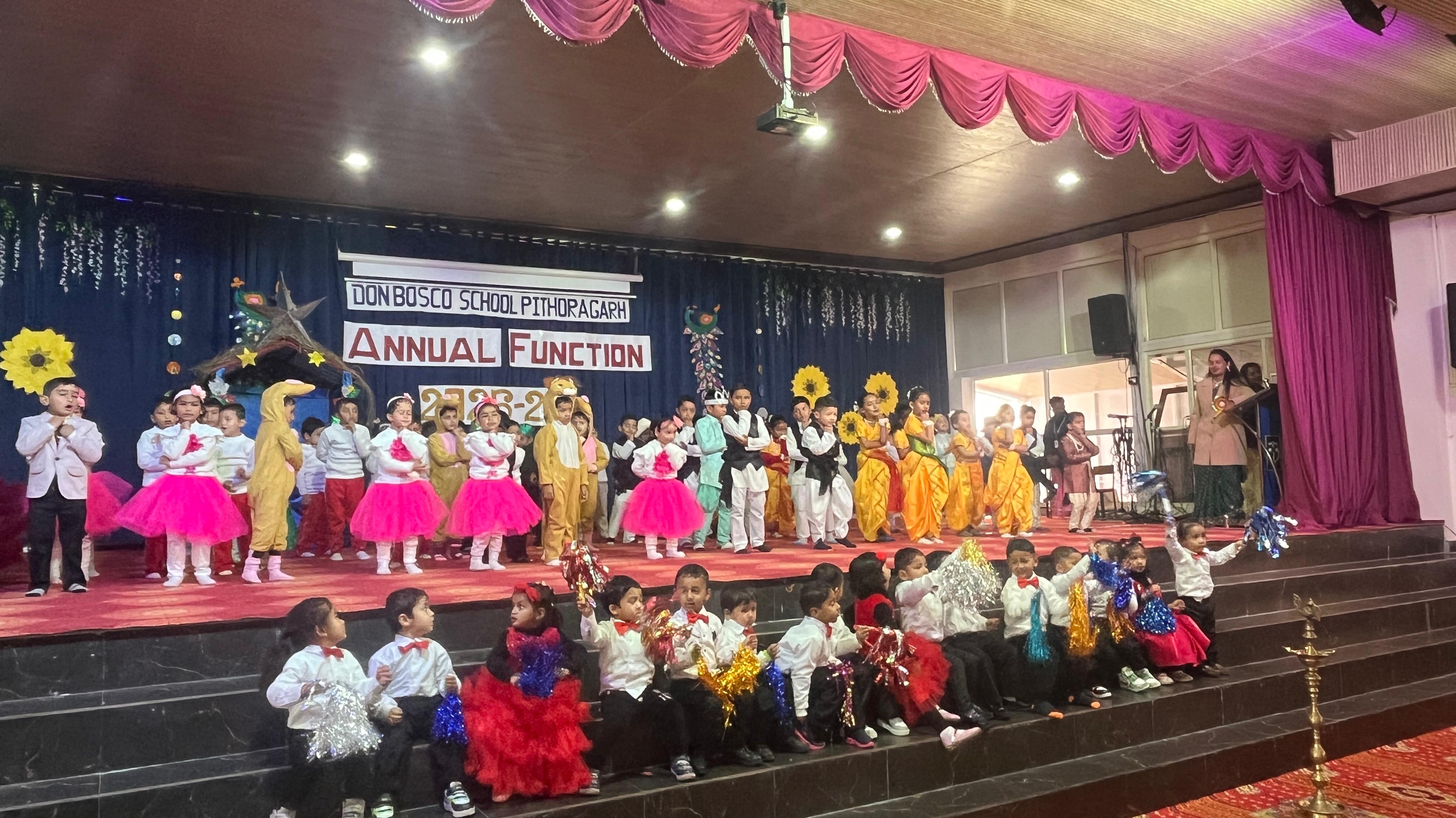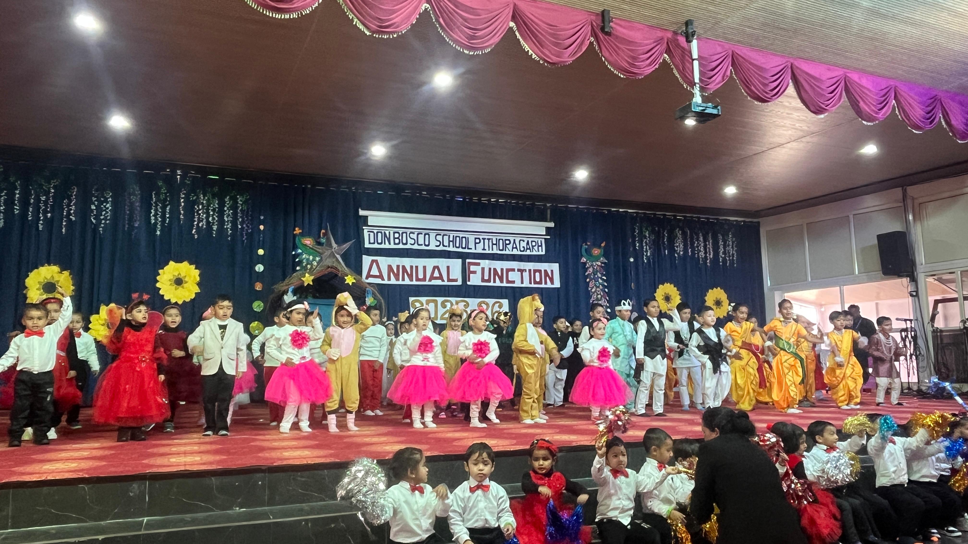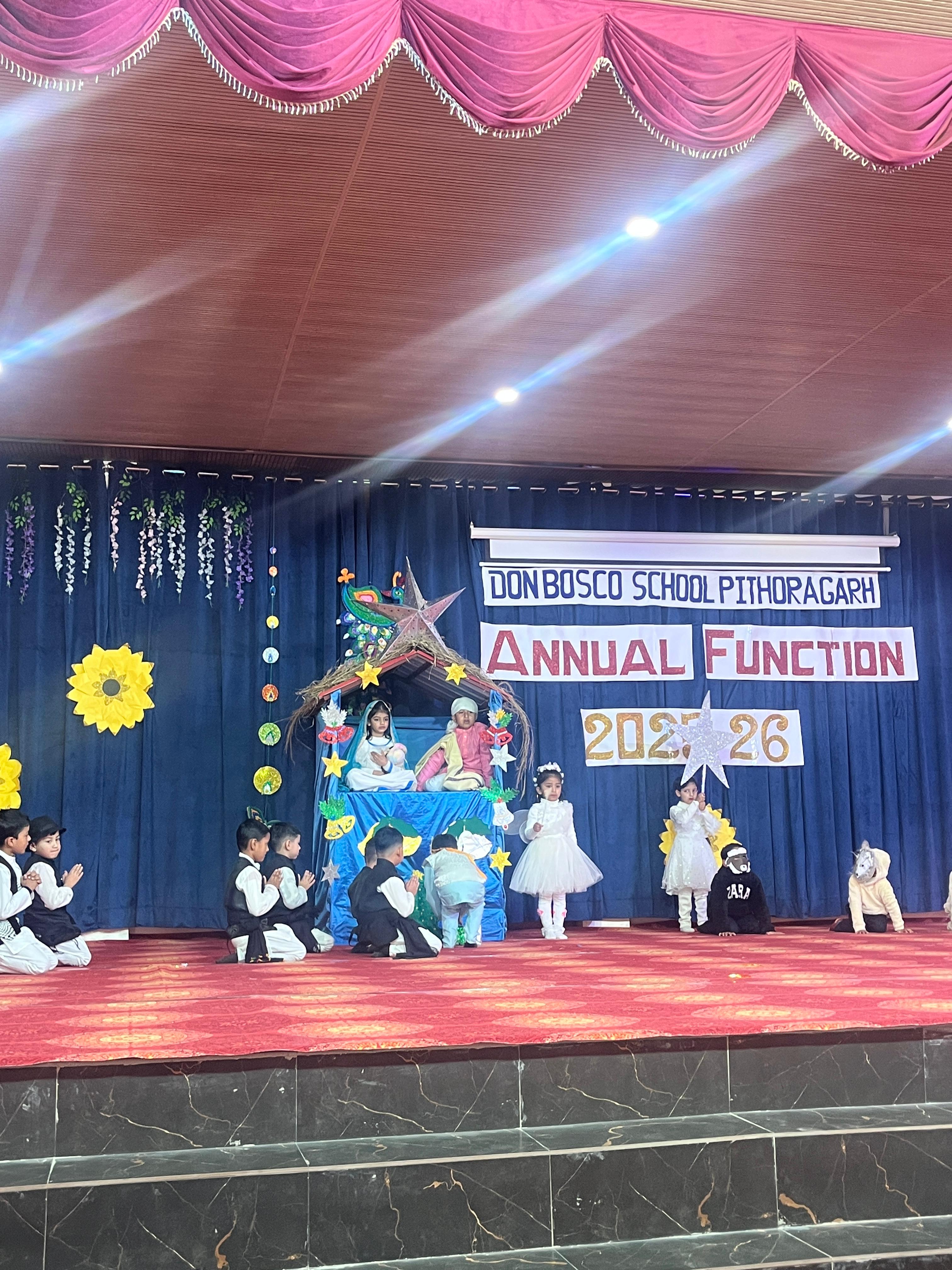 Description : Pre-Primary Annual Day Celebration 2025 at Don Bosco School, Pithoragarh The Pre-Primary Annual Day Celebration 2025 was held with great joy and enthusiasm at Don Bosco School, Pithoragarh. The tiny tots mesmerized the audience with colorful dance performances, songs, and fun-filled acts. The programme reflected the creativity and confidence of the young students. Teachers and parents appreciated the efforts of the children, making the event a joyful and memorable occasion for everyone present.