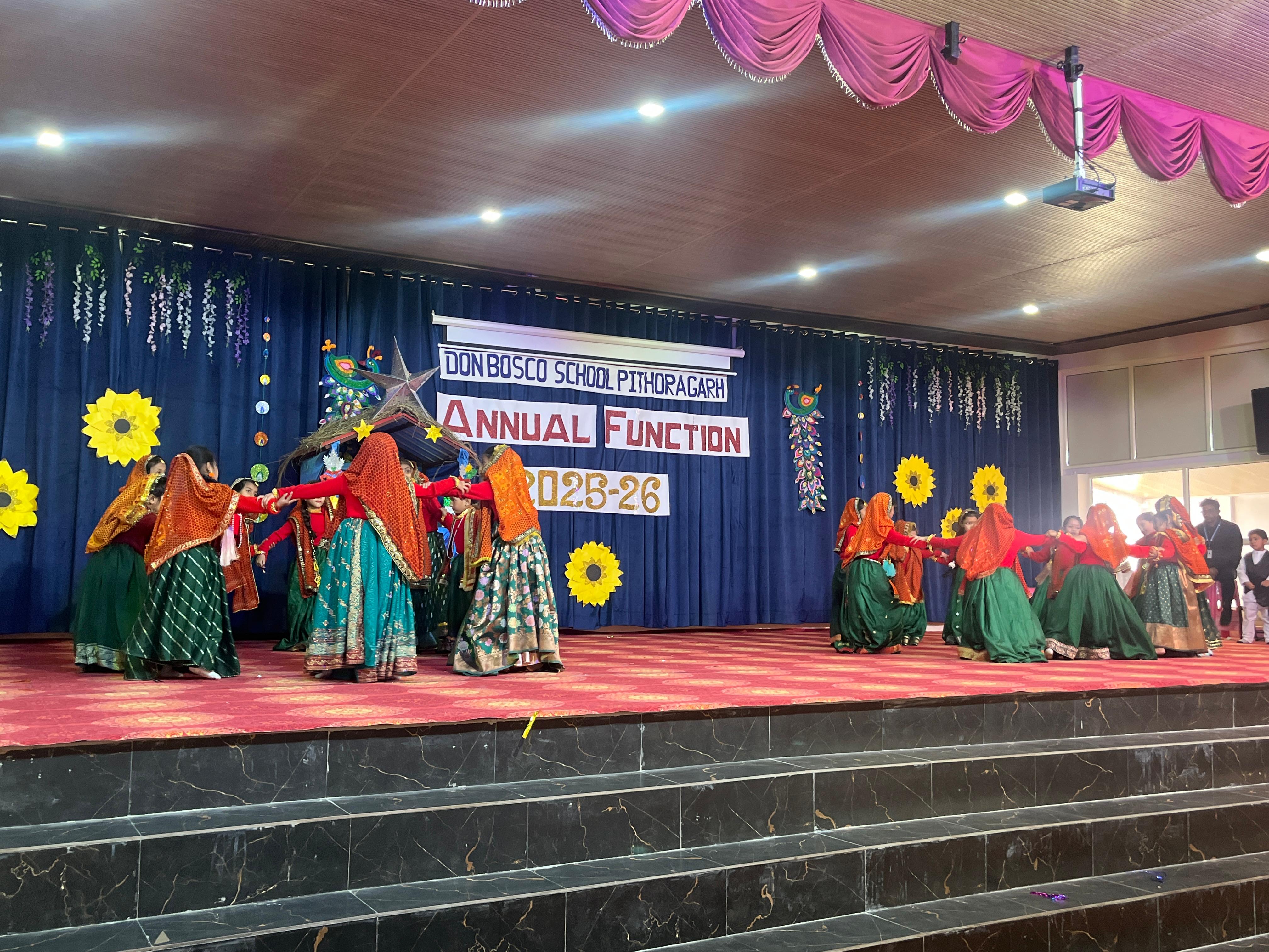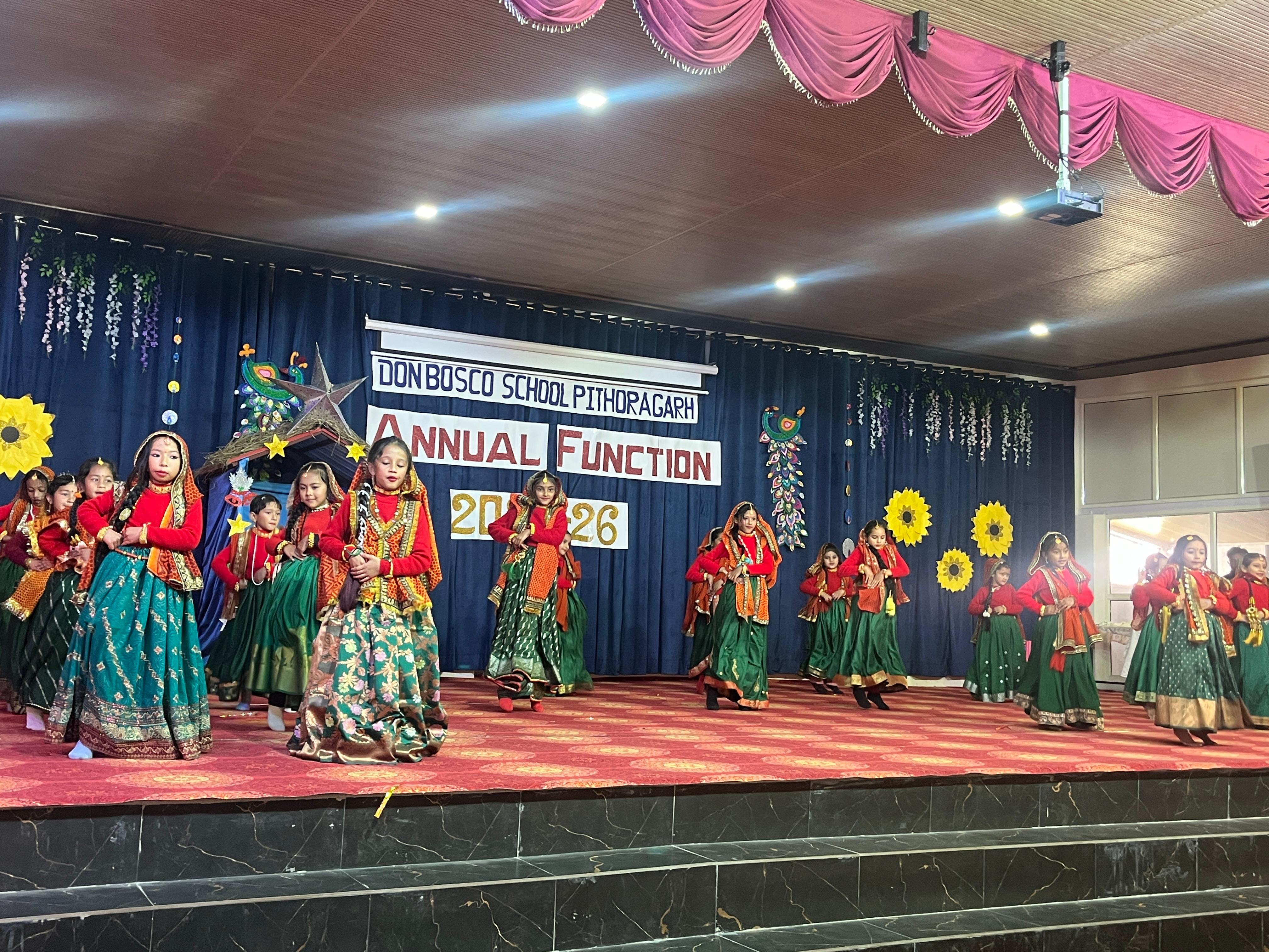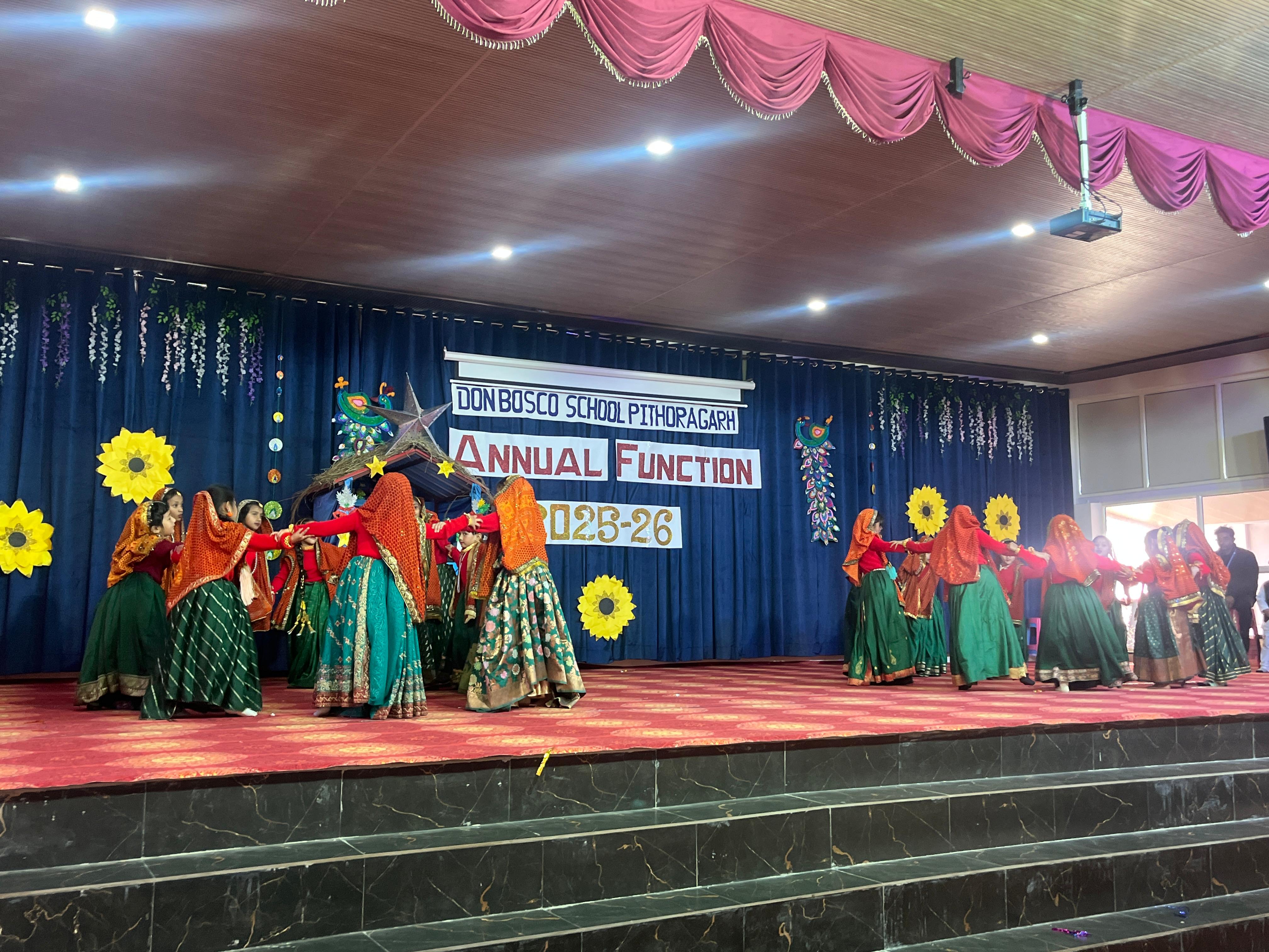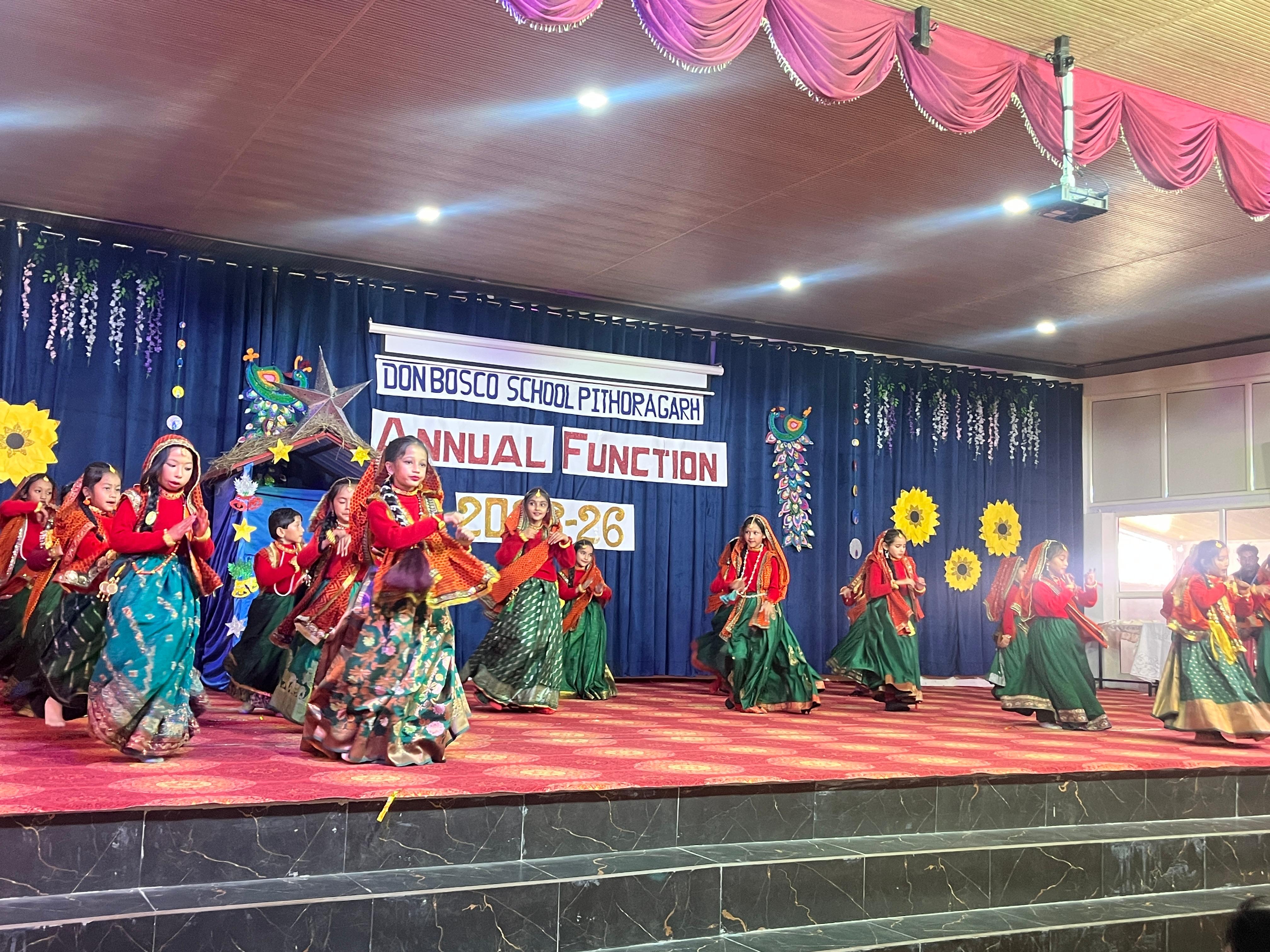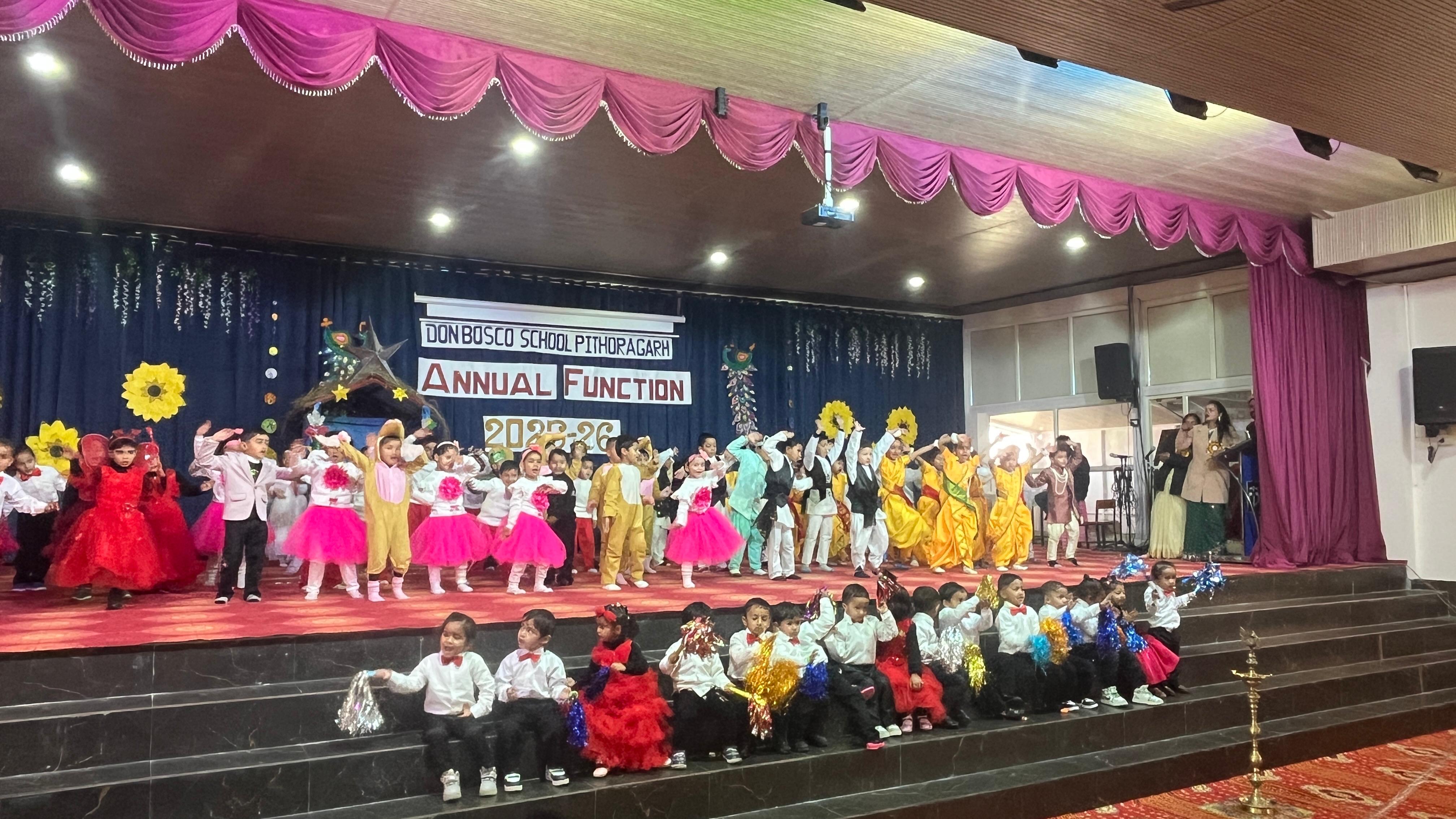 Description : Pre-Primary Annual Day Celebration 2025 at Don Bosco School, Pithoragarh The Pre-Primary Annual Day Celebration 2025 was held with great joy and enthusiasm at Don Bosco School, Pithoragarh. The tiny tots mesmerized the audience with colorful dance performances, songs, and fun-filled acts. The programme reflected the creativity and confidence of the young students. Teachers and parents appreciated the efforts of the children, making the event a joyful and memorable occasion for everyone present.