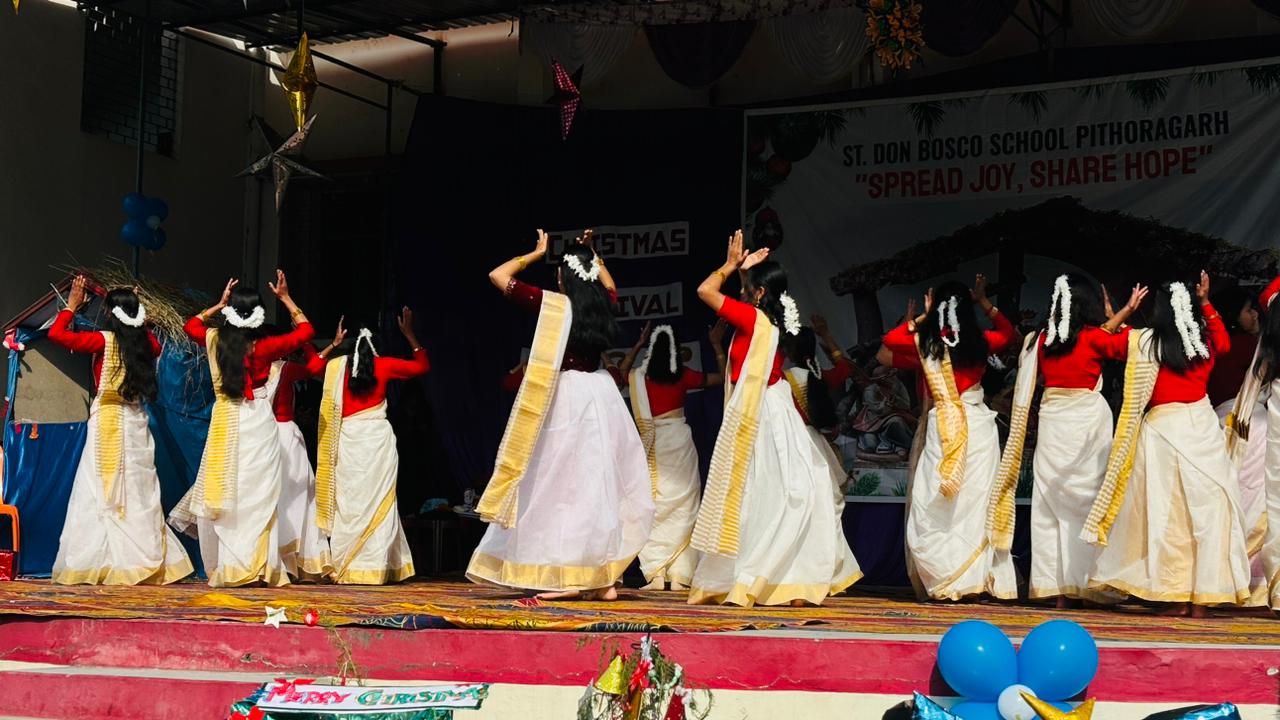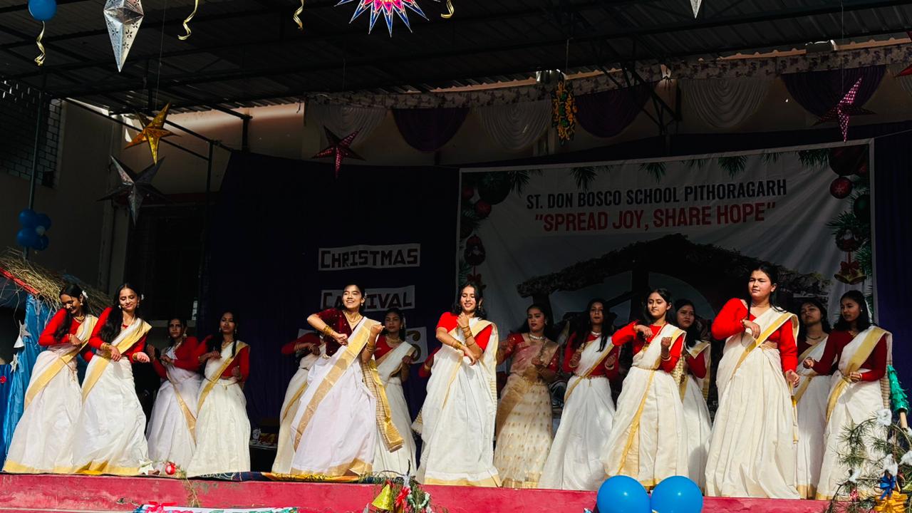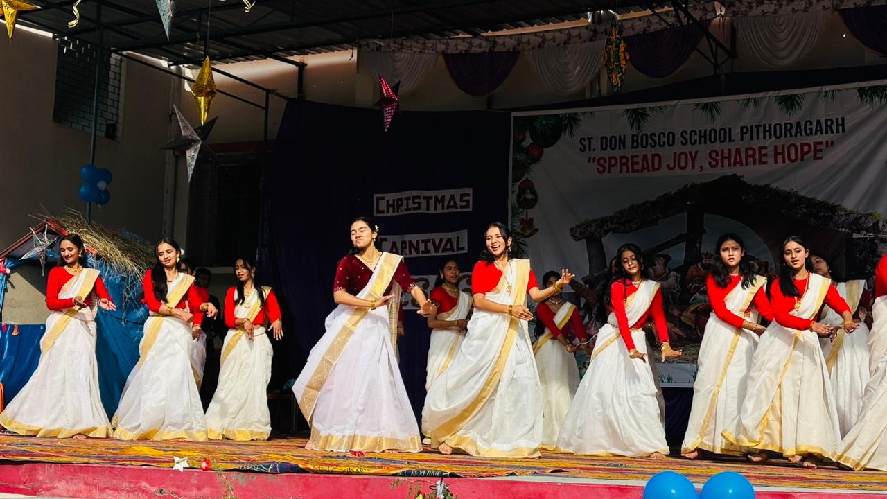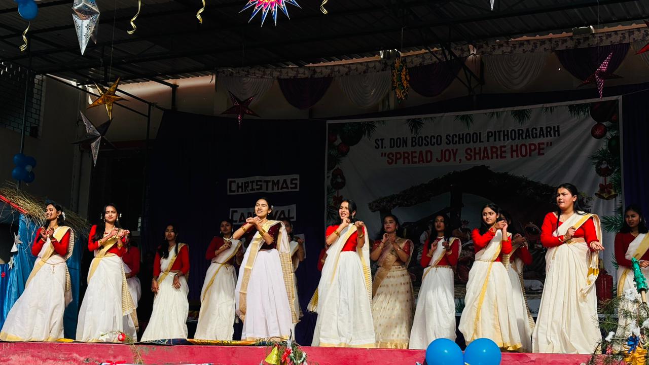 Description : Christmas Carnival Celebration at Don Bosco School, Pithoragarh Don Bosco School, Pithoragarh organized a Christmas Carnival with great enthusiasm and festive spirit. Students presented a variety of well-prepared cultural programmes, including dances and songs, showcasing their talents. A small mela was also arranged, adding to the joy and vibrancy of the occasion. Parents and members of the community were cordially invited to attend the programme. The celebration reflected the true spirit of Christmas and fostered a sense of joy, unity, and togetherness among all present.