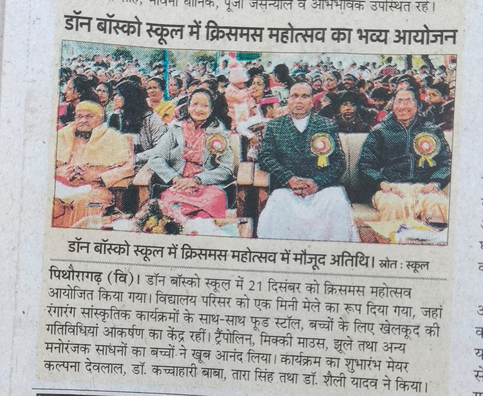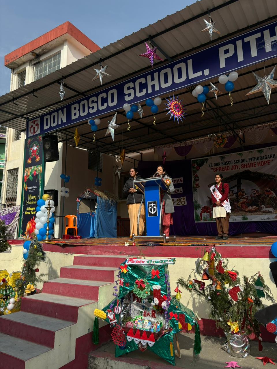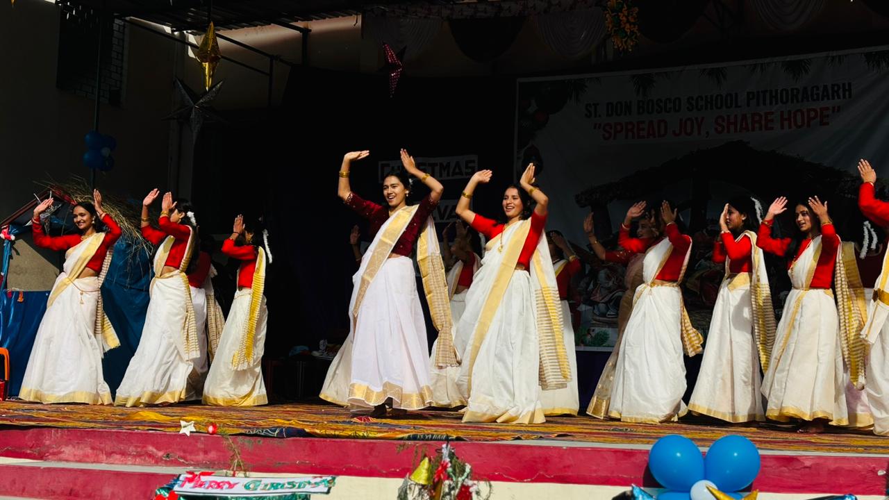 Description : Christmas Carnival Celebration at Don Bosco School, Pithoragarh Don Bosco School, Pithoragarh organized a Christmas Carnival with great enthusiasm and festive spirit. Students presented a variety of well-prepared cultural programmes, including dances and songs, showcasing their talents. A small mela was also arranged, adding to the joy and vibrancy of the occasion. Parents and members of the community were cordially invited to attend the programme. The celebration reflected the true spirit of Christmas and fostered a sense of joy, unity, and togetherness among all present.